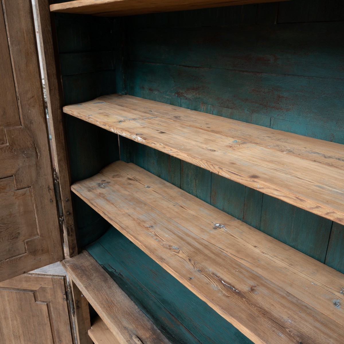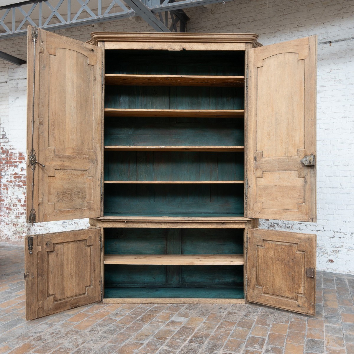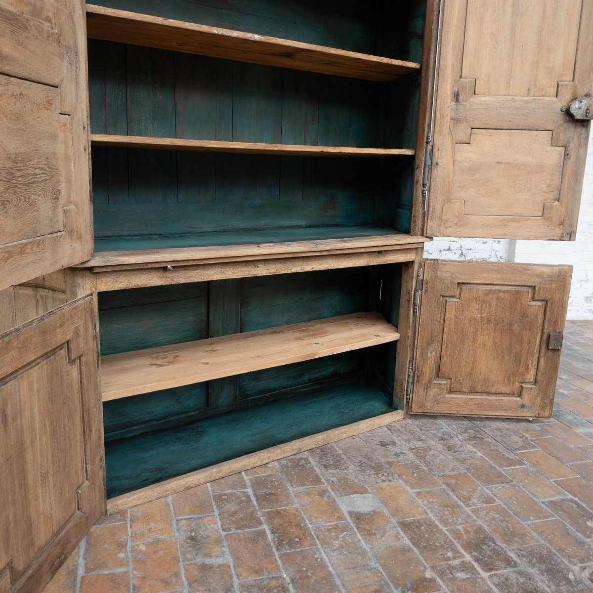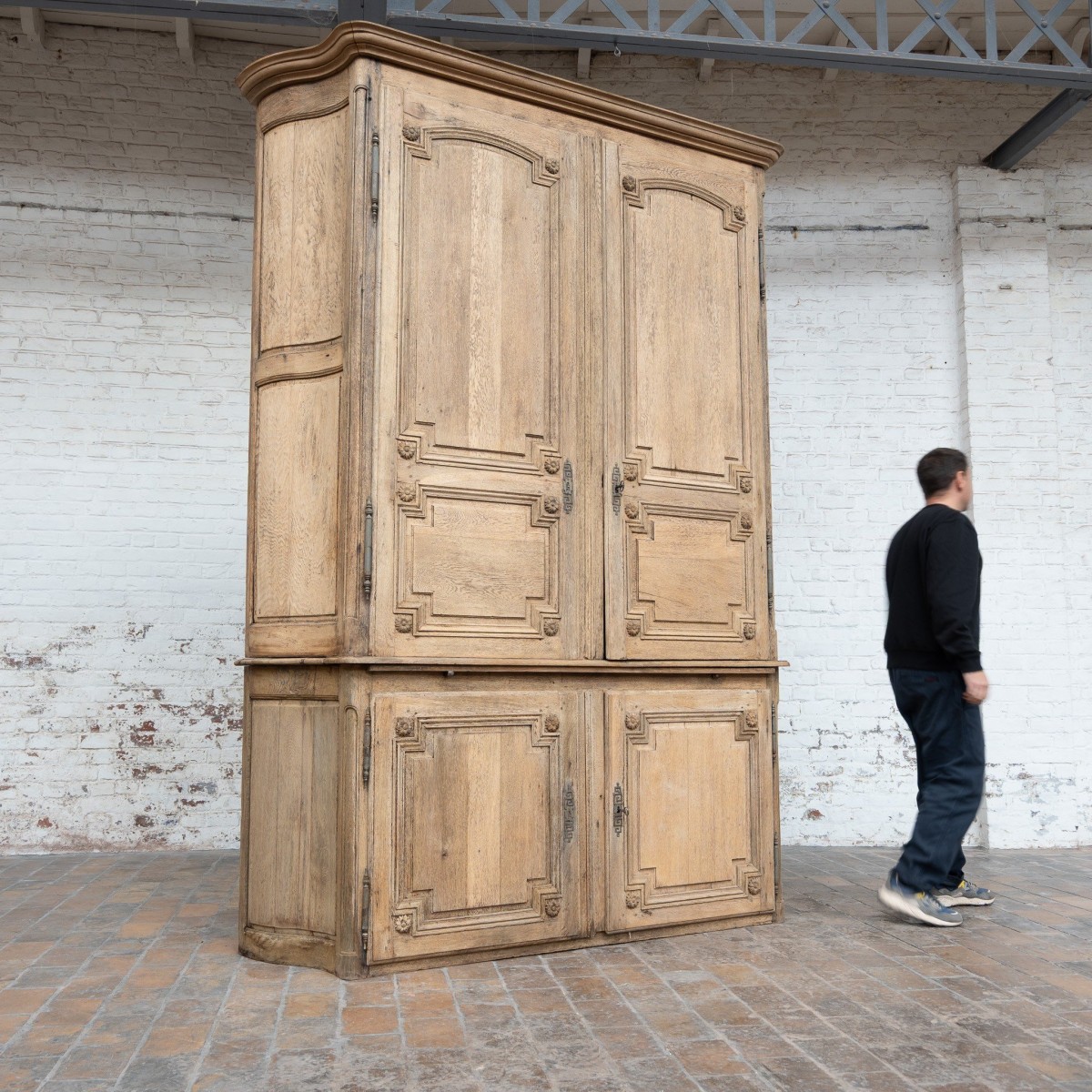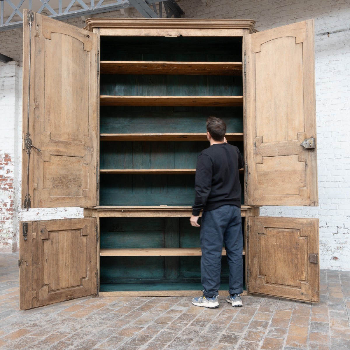 Double-bodied cabinet known as a hunting cabinet, made of oak.