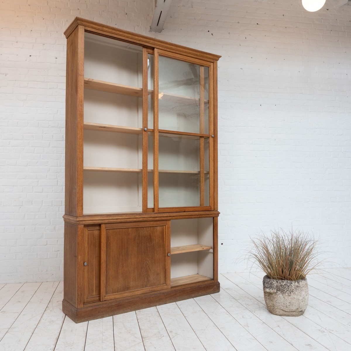 Oak display cabinet with sliding doors, 1930