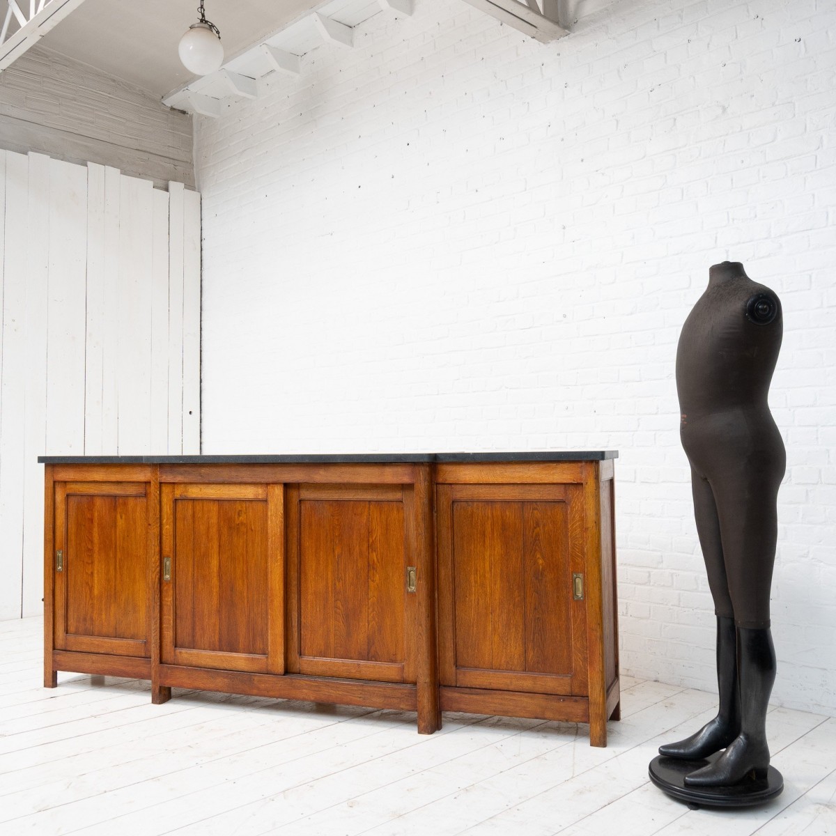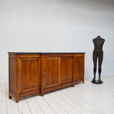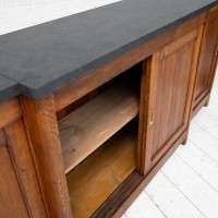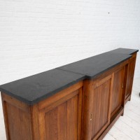 Bar back with sliding doors in oak and blue stone