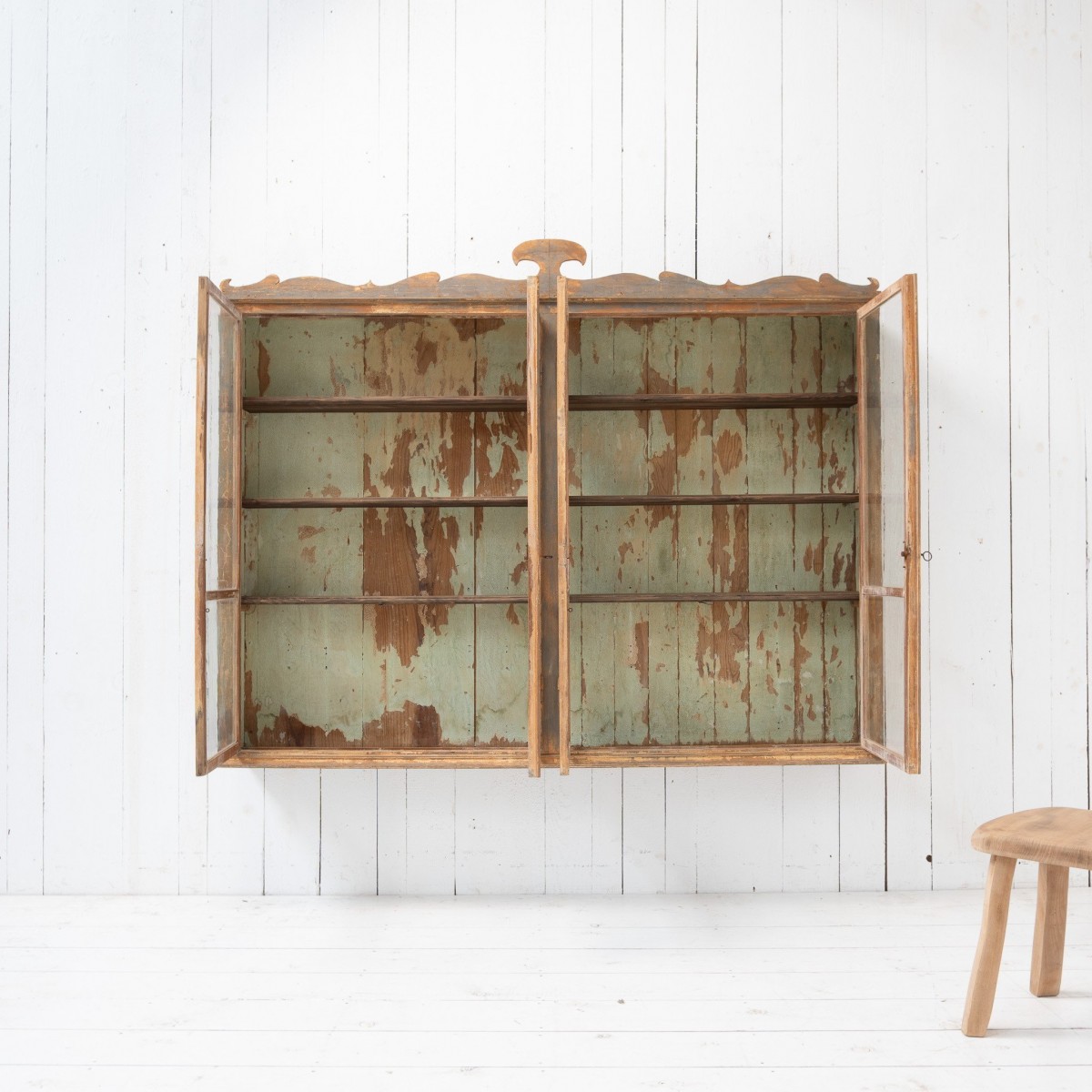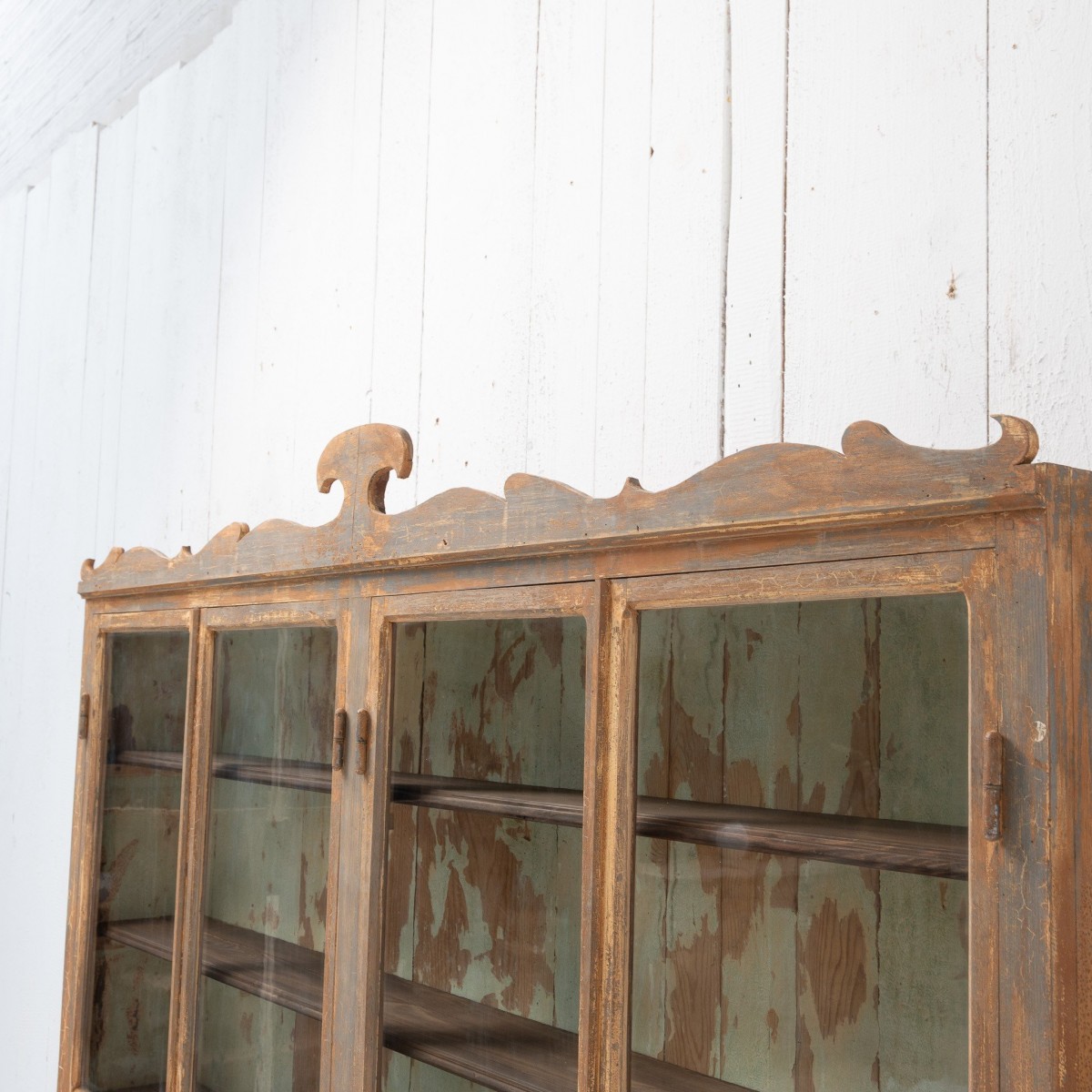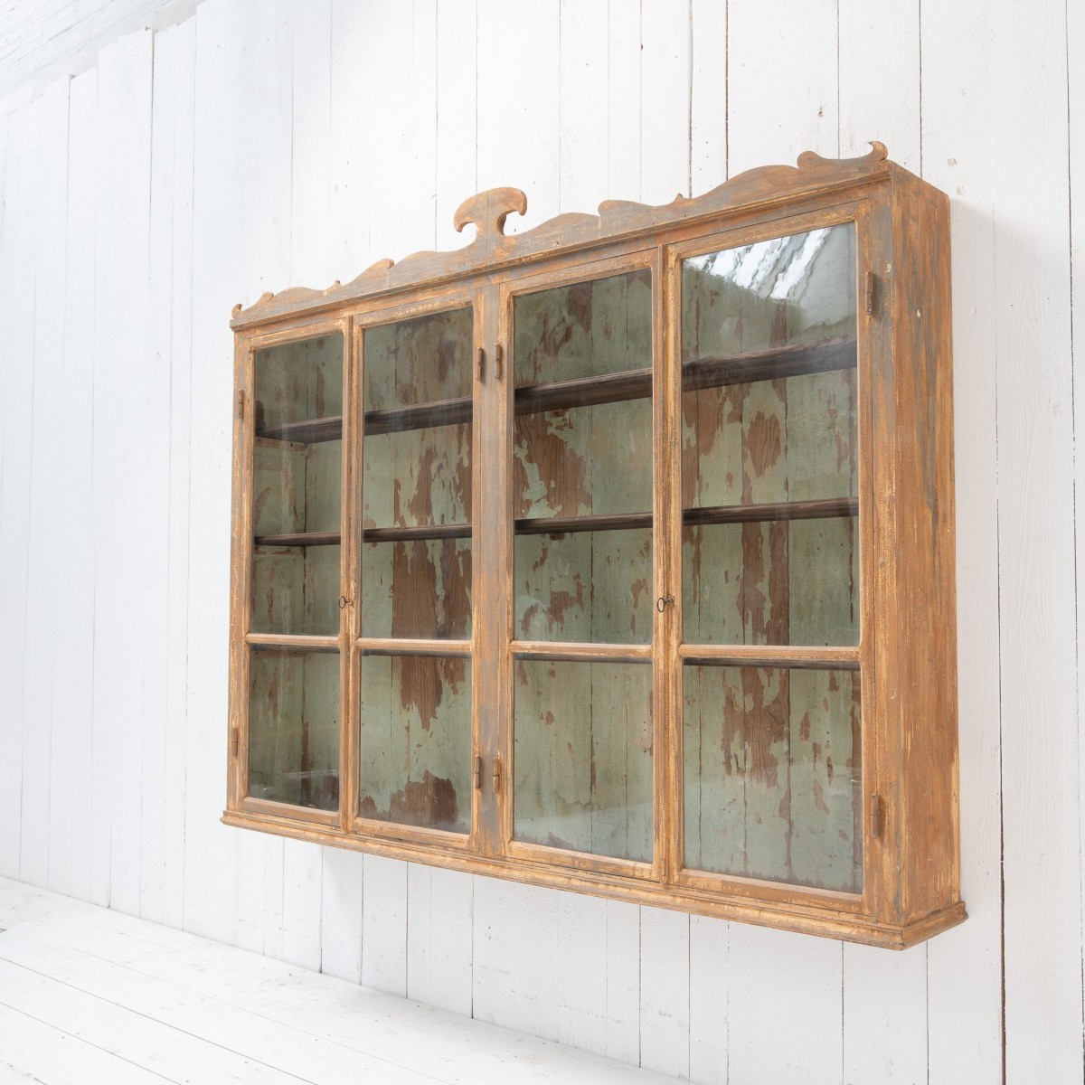 Antique Wall Display Cabinet with 4 Doors and Decorated Pediment – Late 19th Century,