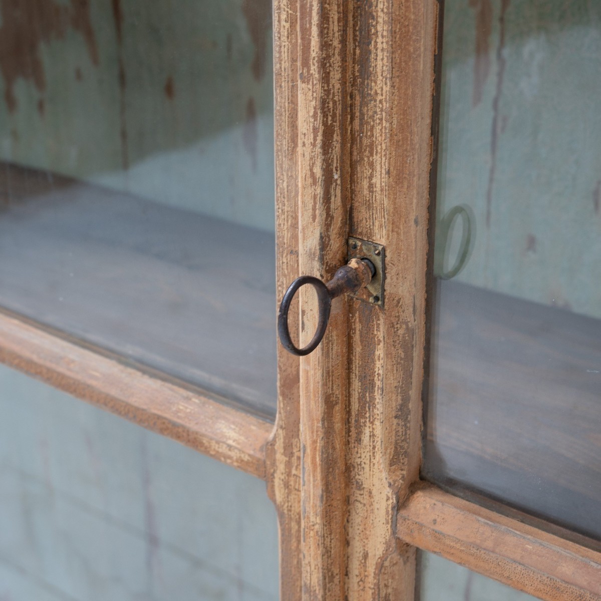 Antique wall-mounted display cabinet dating from the late 19th century, crafted from solid wood and featuring a beautiful original patina, preserved through age and use.