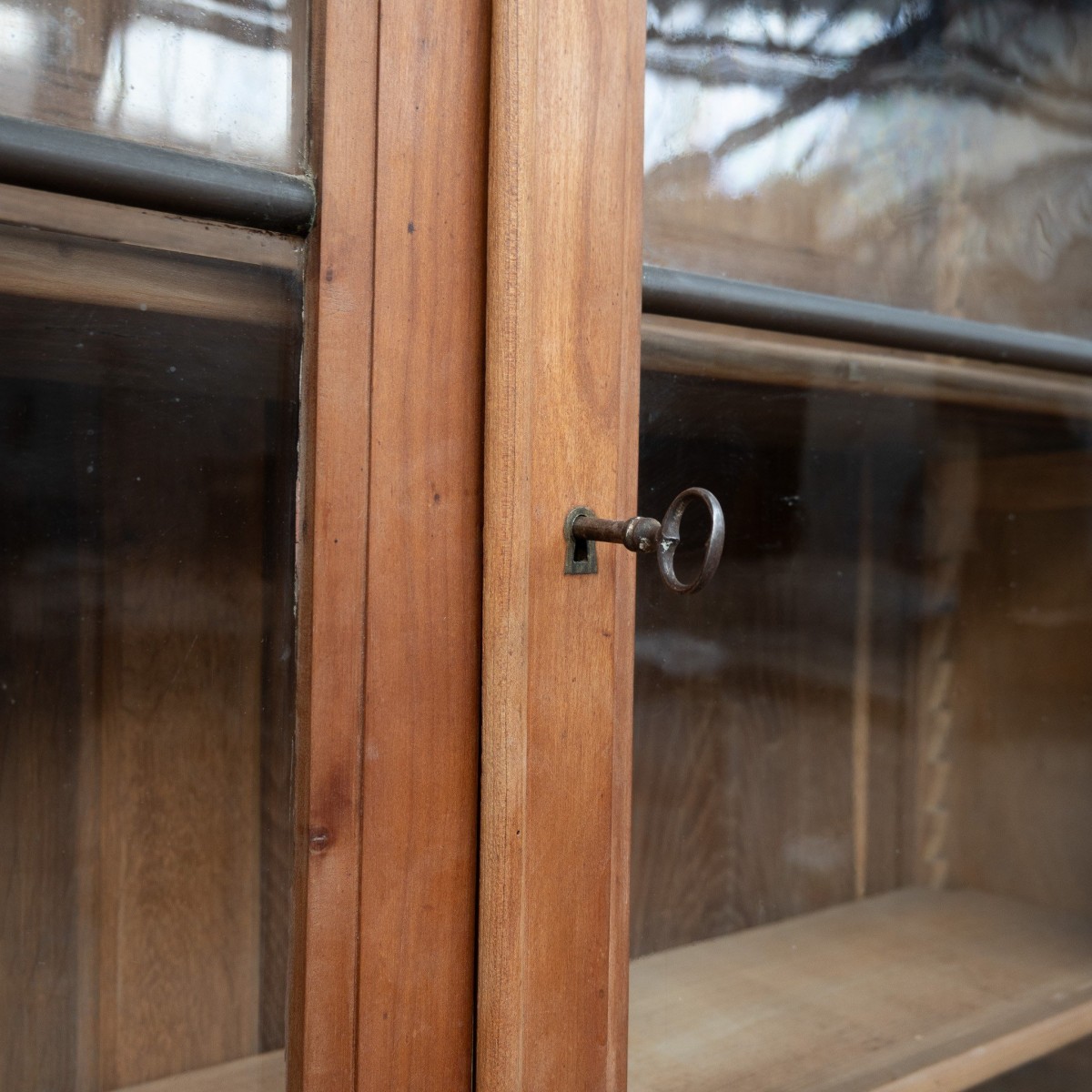 The interior depth measures 20 cm in the upper section and 47 cm in the lower section. The cherry wood displays a beautiful aged patina, developed over time, enhancing the authenticity and charm of this antique piece.