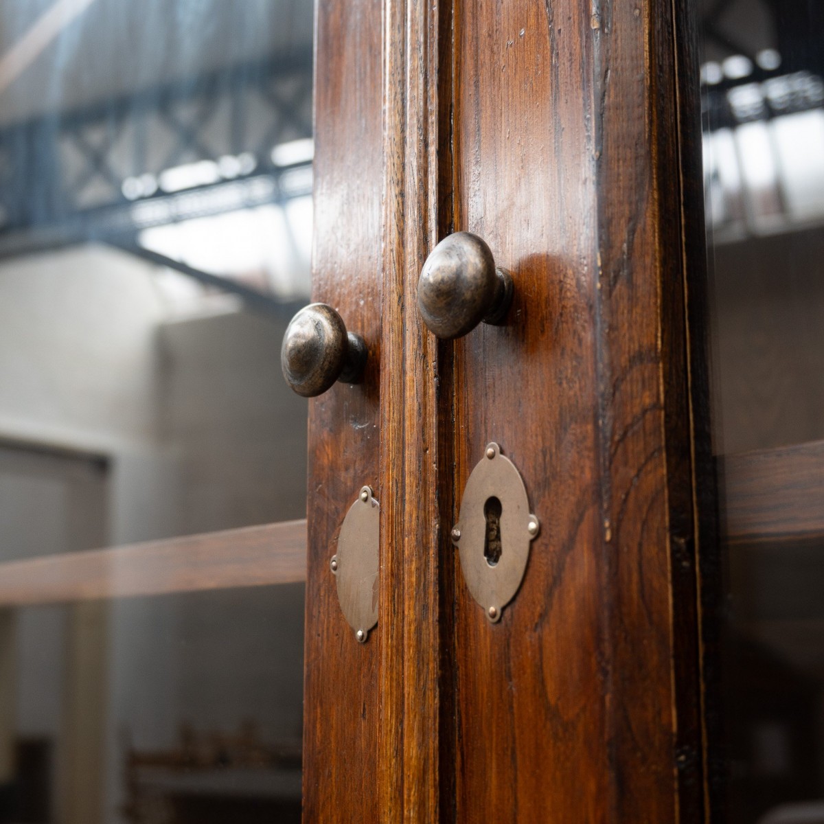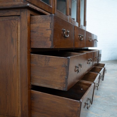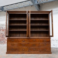 It is composed of four lockable doors and twelve drawers, offering generous storage capacity.