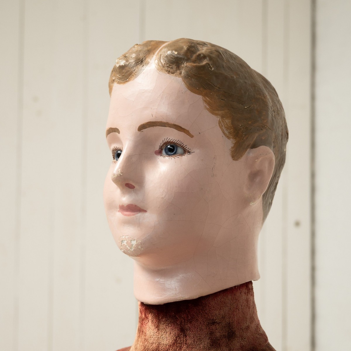 Mannequin de présentation homme, à tête en papier mâché peint à la