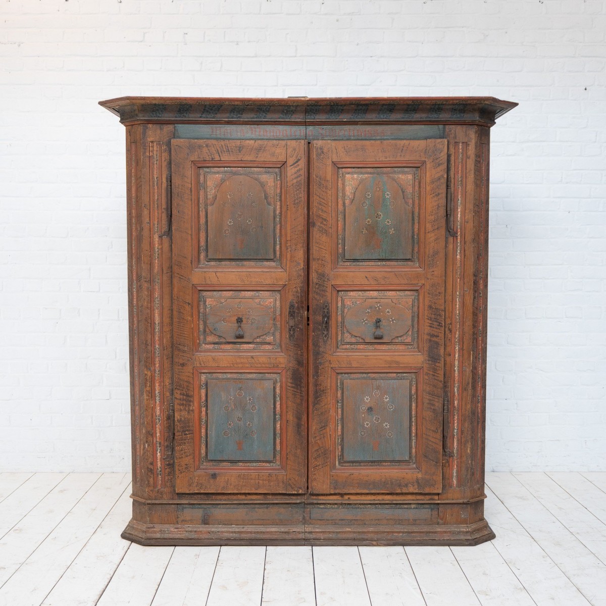 Armoire en bois 2 portes à décor polychrome, XIXème