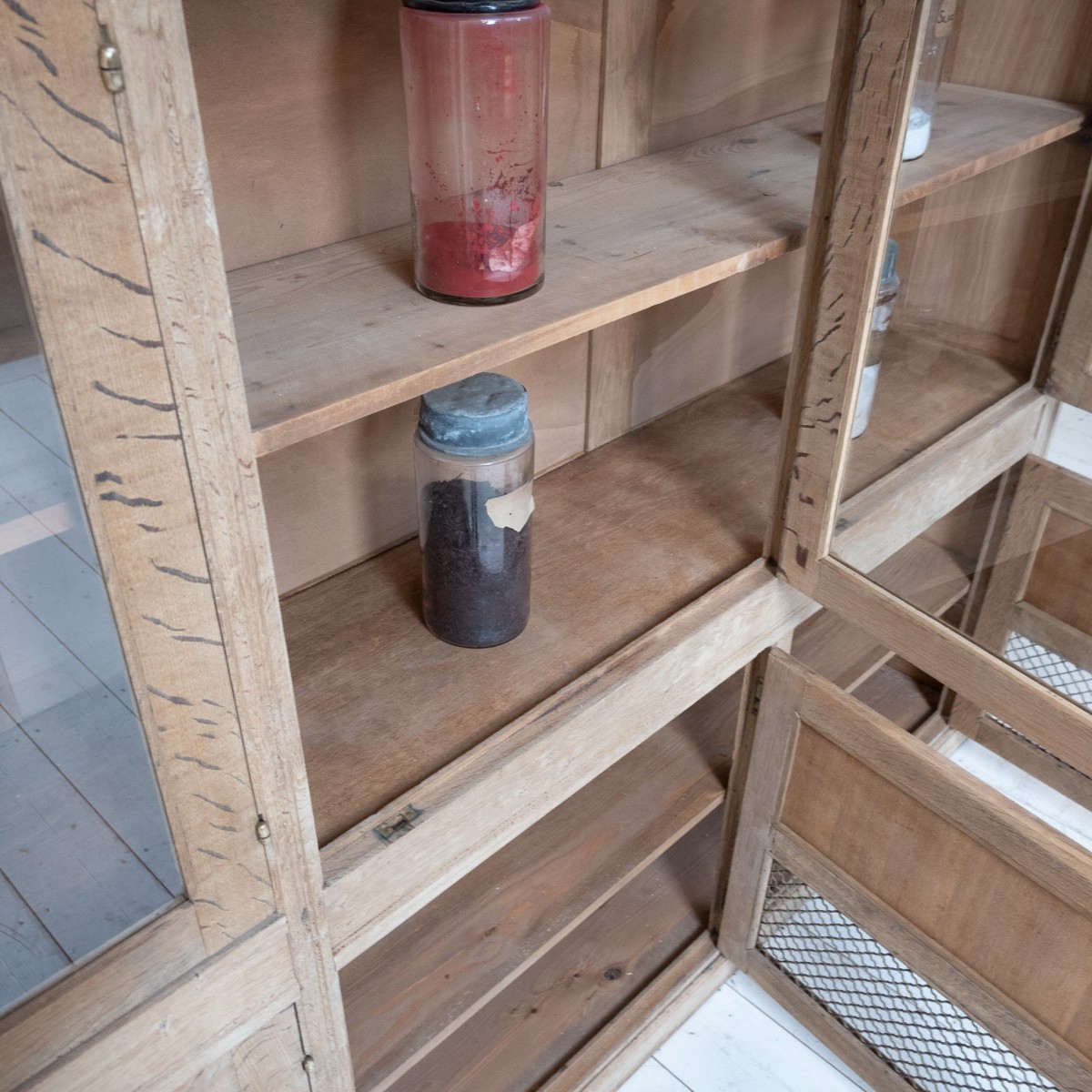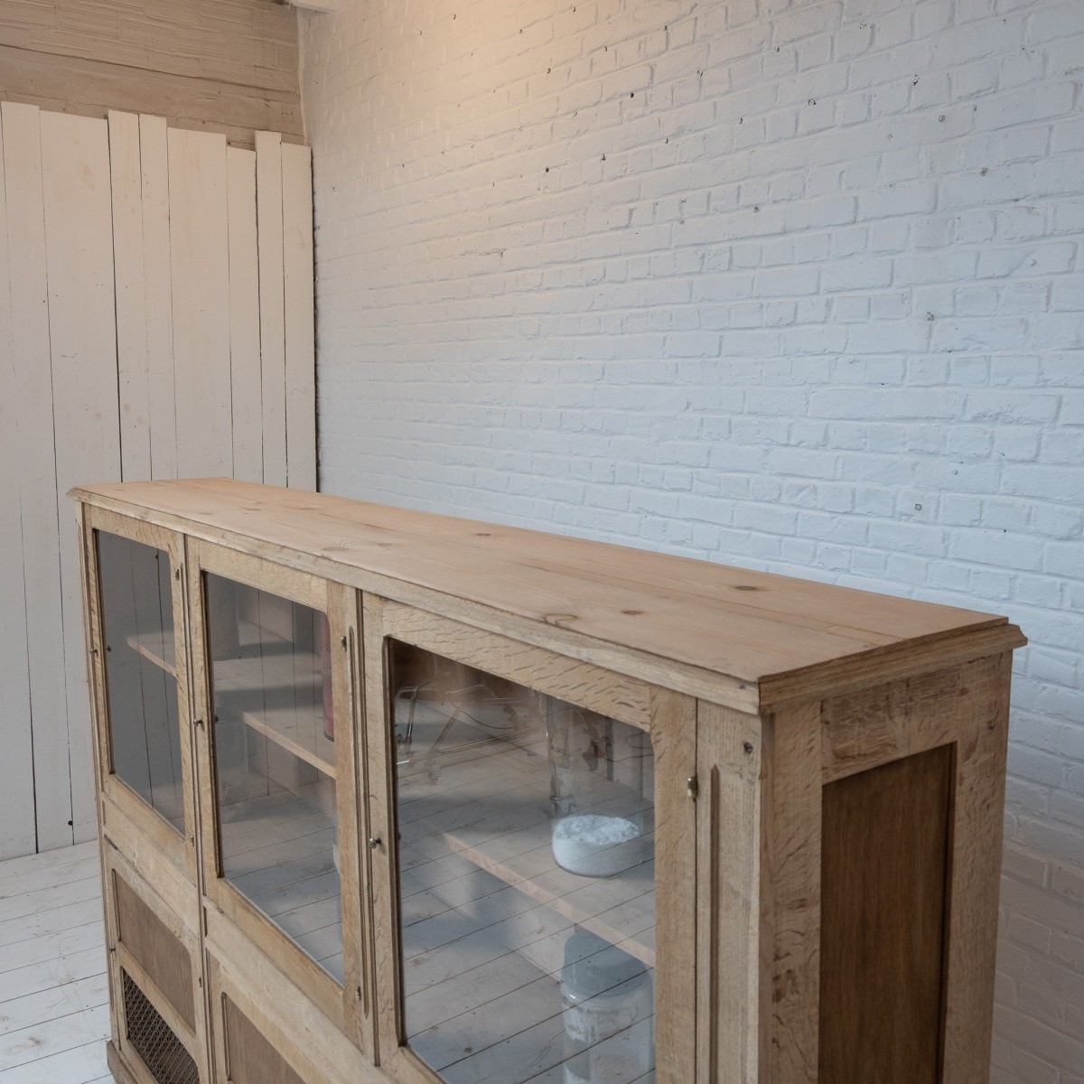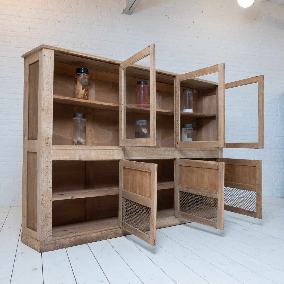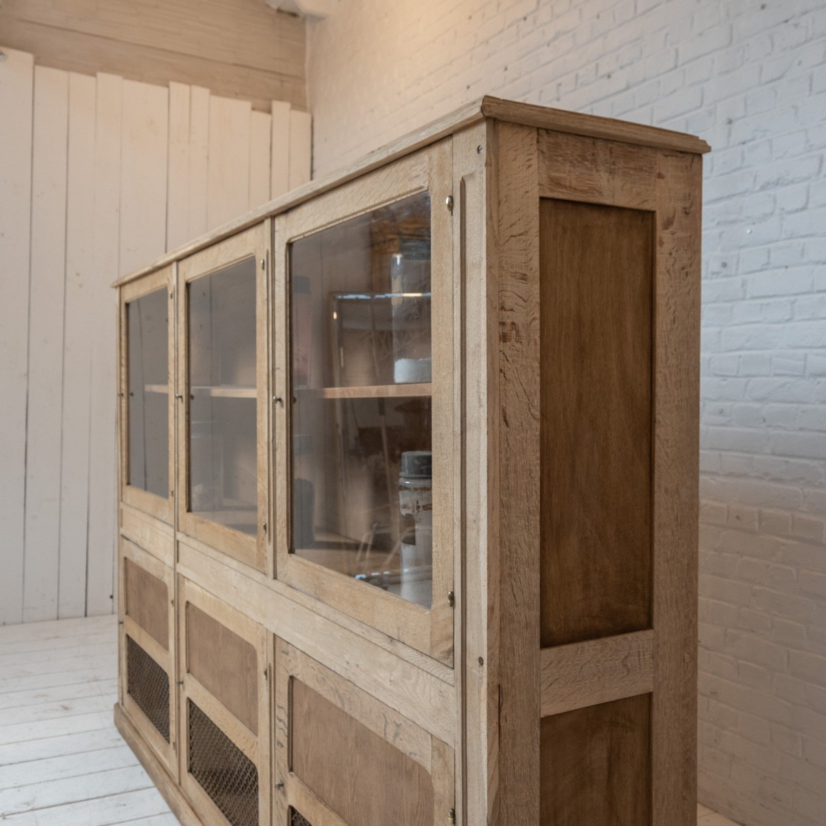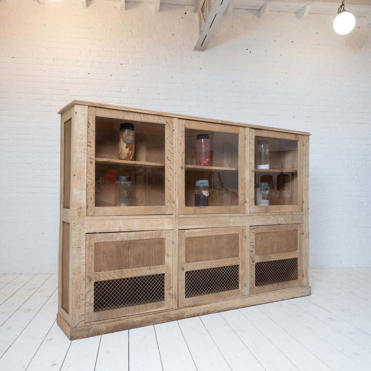 3 portes vitrées en partie supérieur et 3 portes grillagées en partie inférieur.