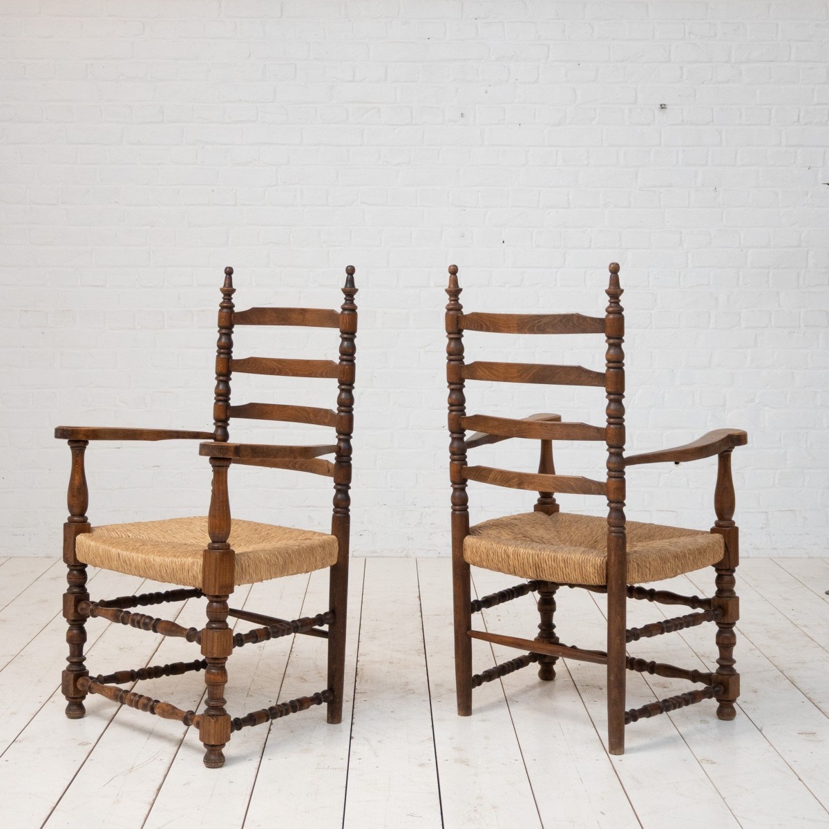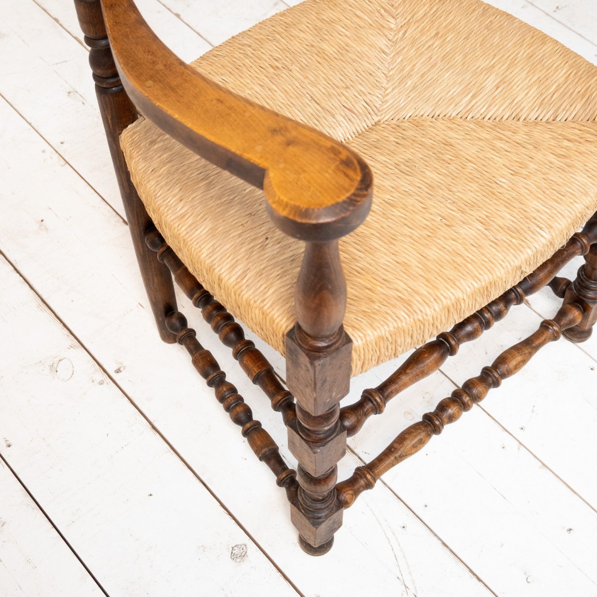 Paire de fauteuils structure en bois avec assise garnie de paille, dans le goût de Charles DUDOUYT, travaille des années 1950.