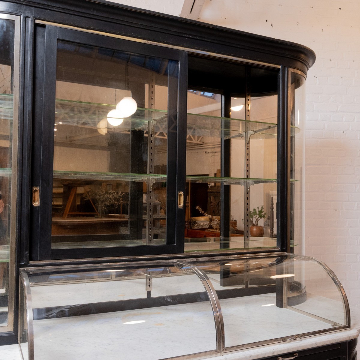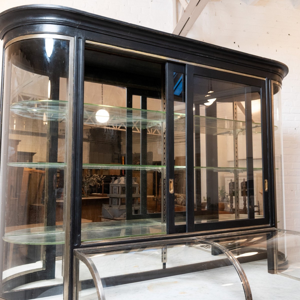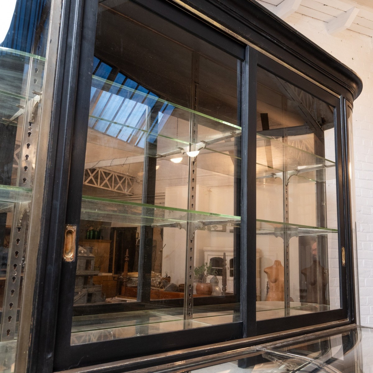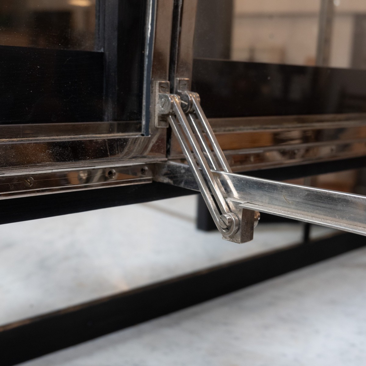 Cotés et vitrine à abattant en verre bombé (à noter un verre synthétique sur la vitrine à abattants).