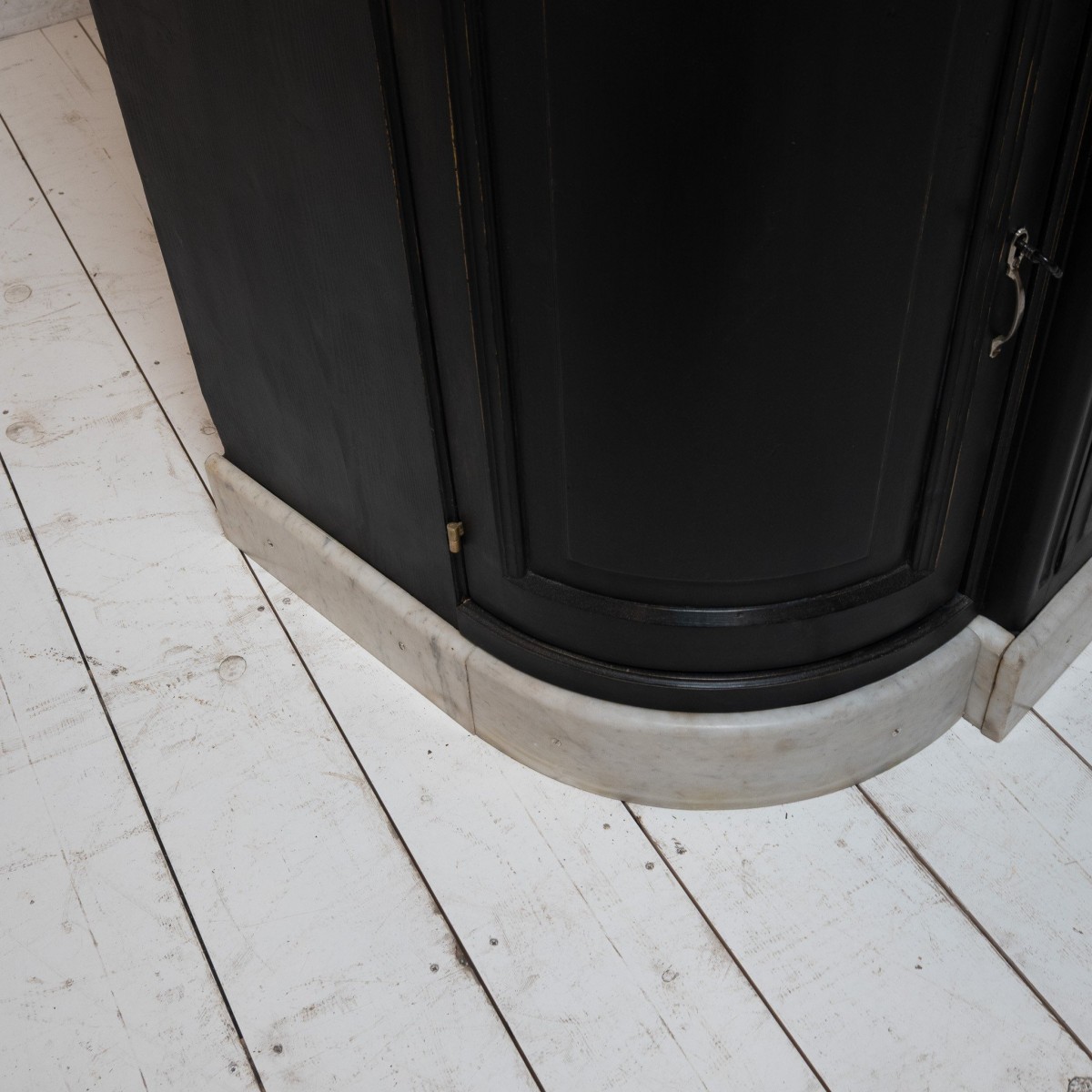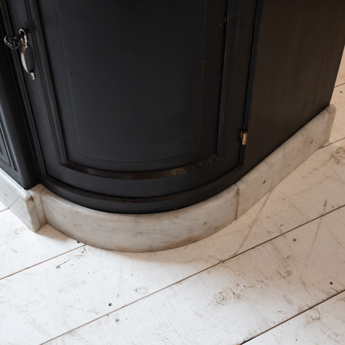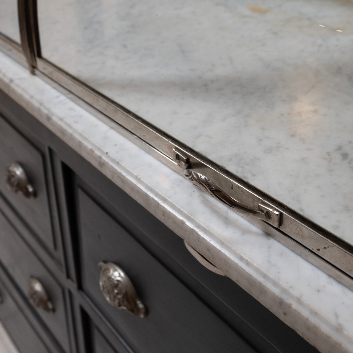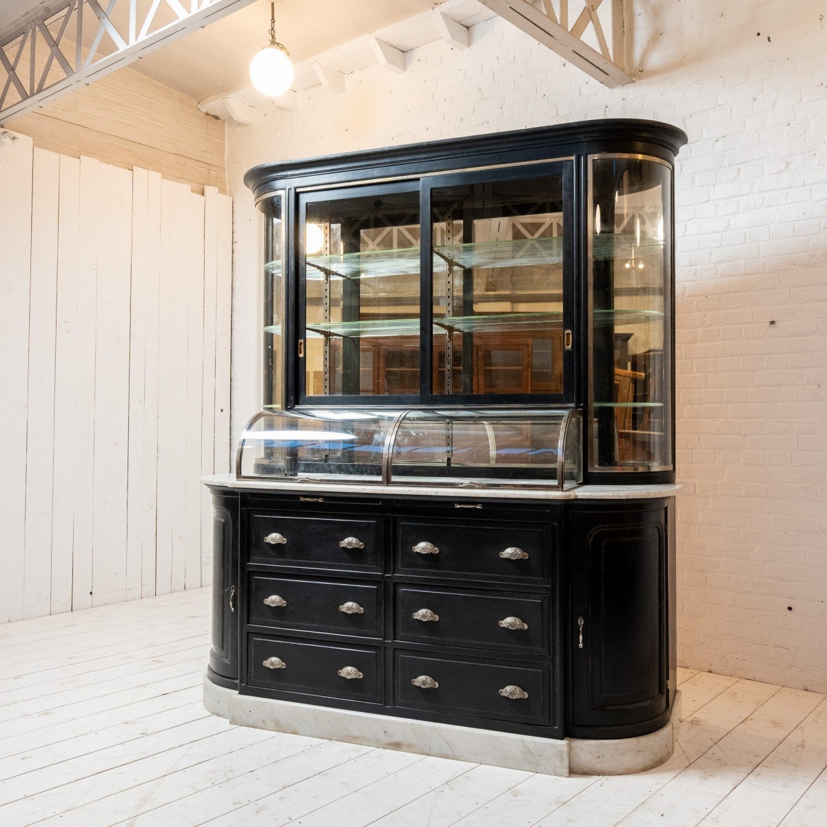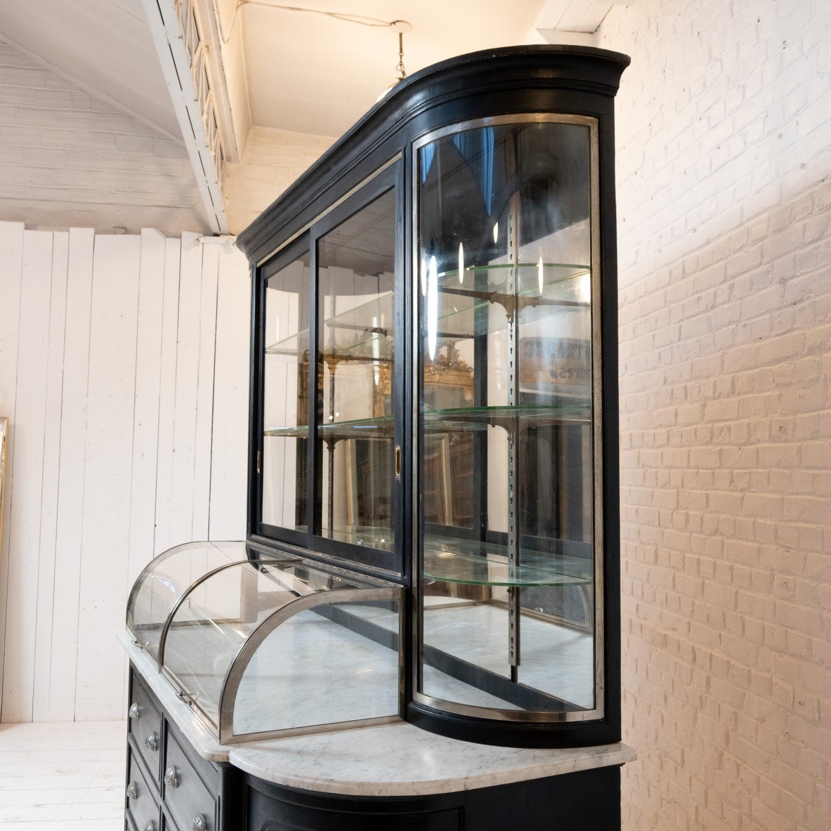 Cotés et vitrine à abattant en verre bombé (à noter un verre synthétique sur la vitrine à abattants).