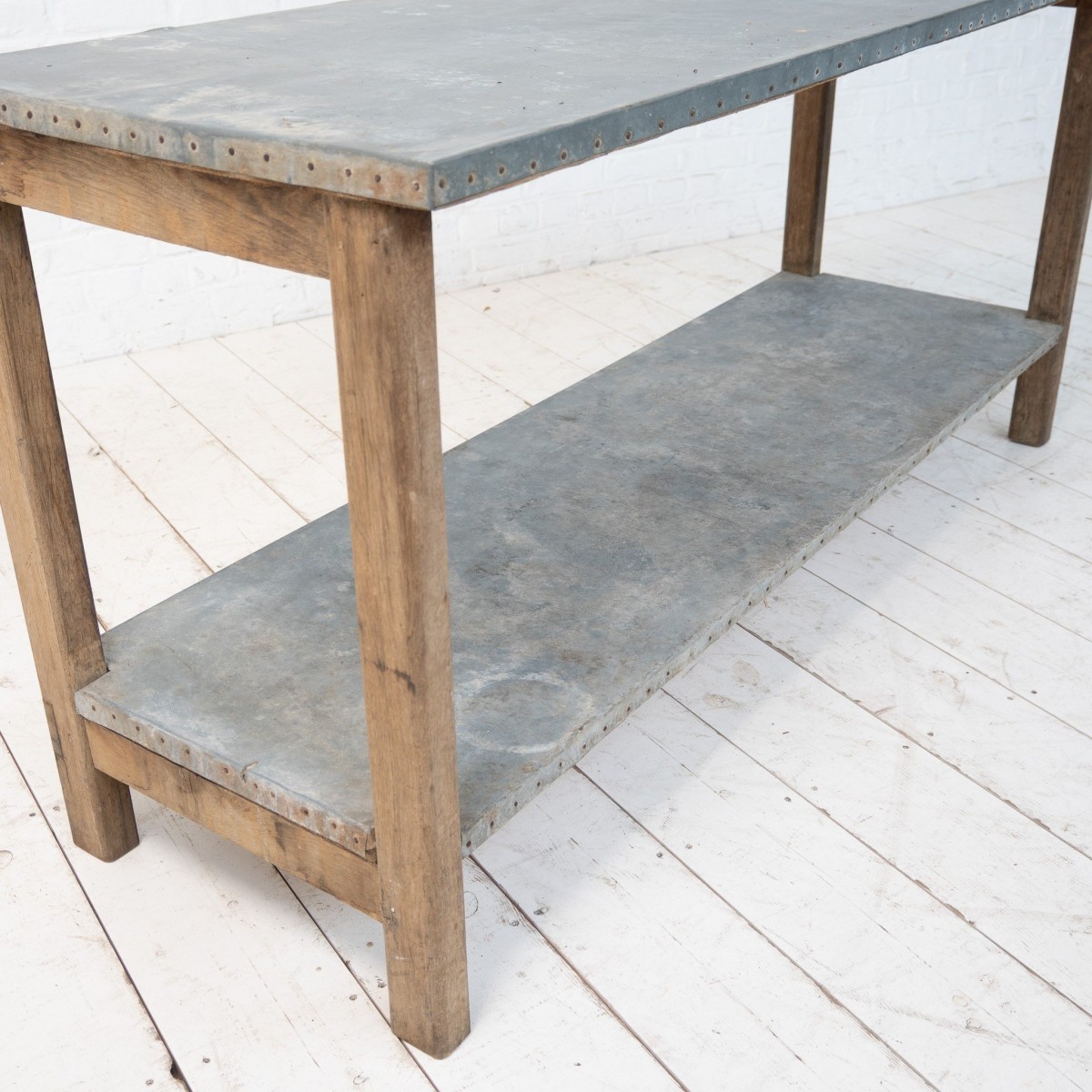 Ancienne table de fleuriste zinc et chêne, 1920