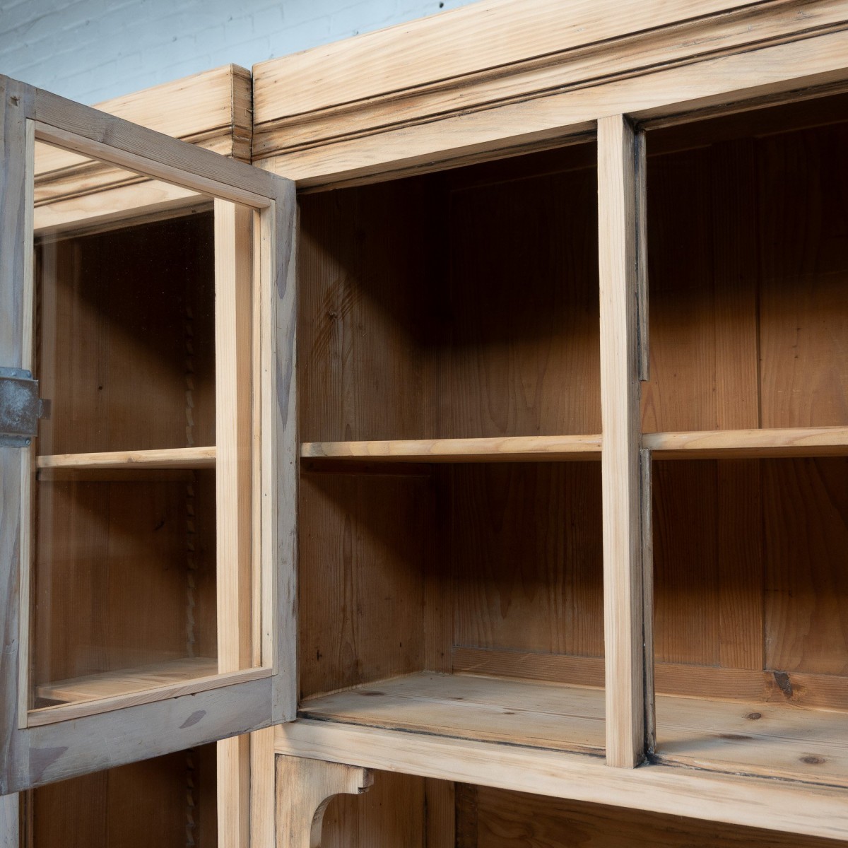 Grand vaisselier en sapin composé de plusieurs éléments.