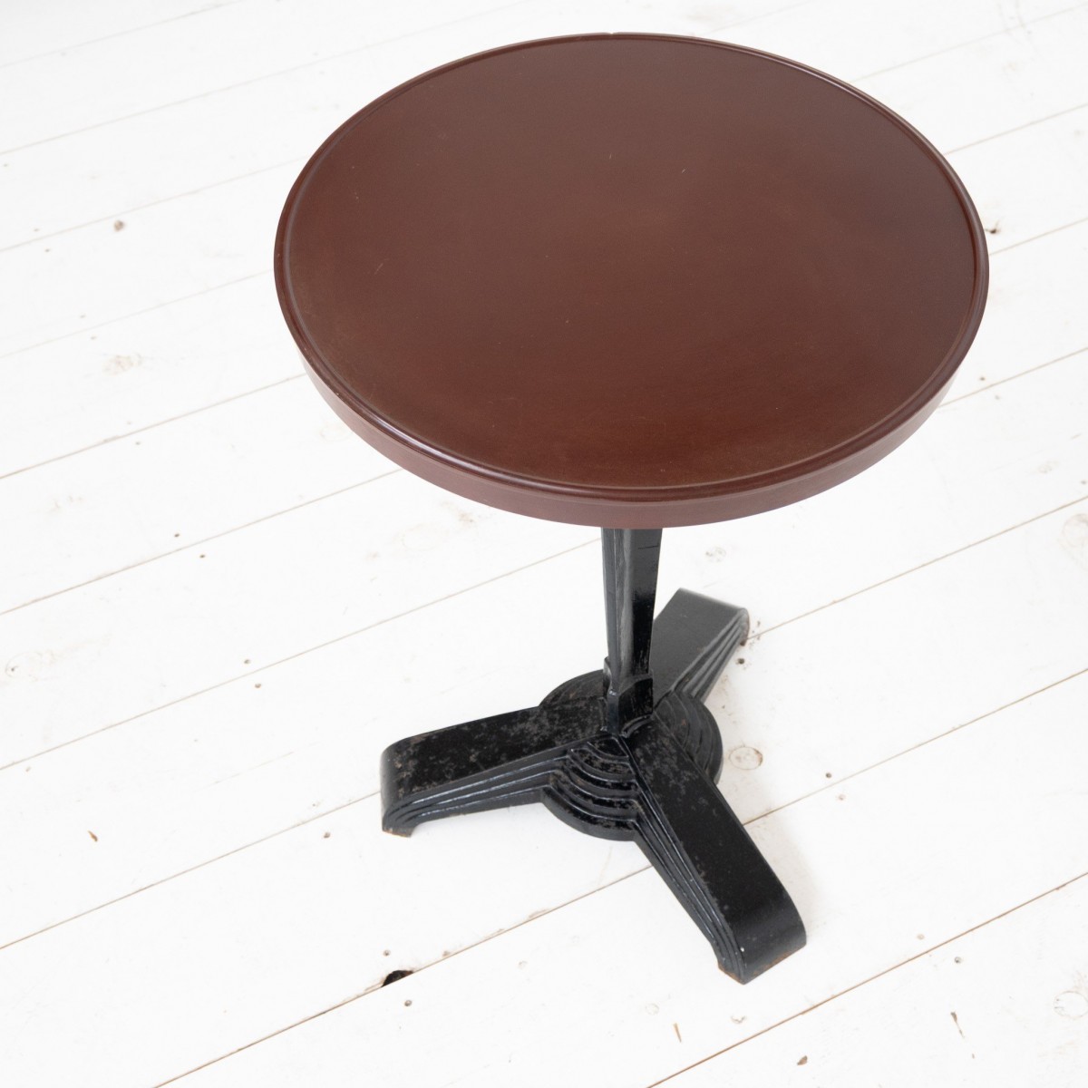 Table Louis VUITTON, piétement en fonte monogrammé LV et plateau en bakélite France vers 1930.