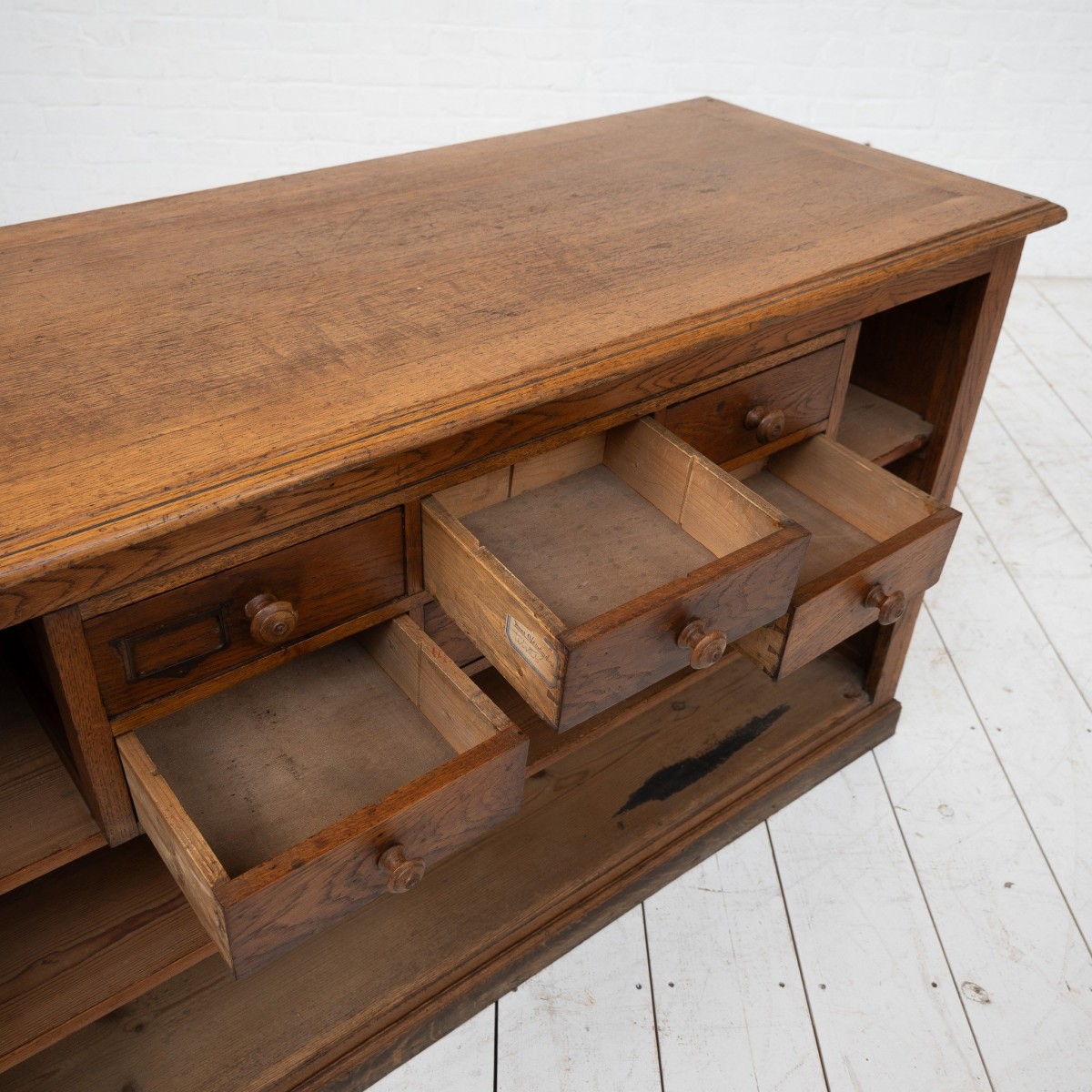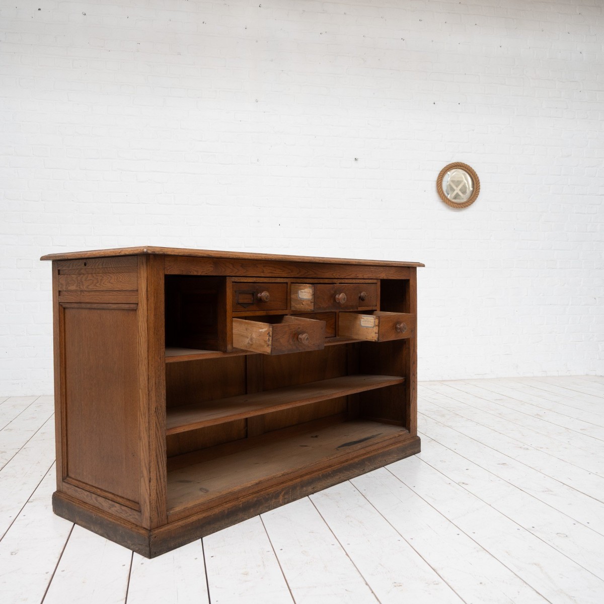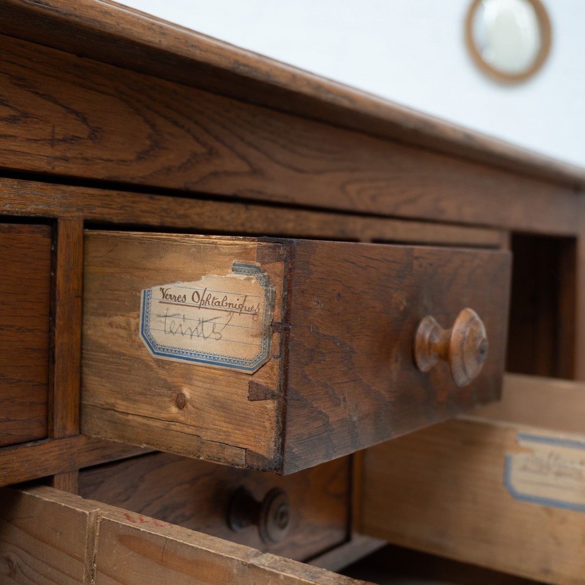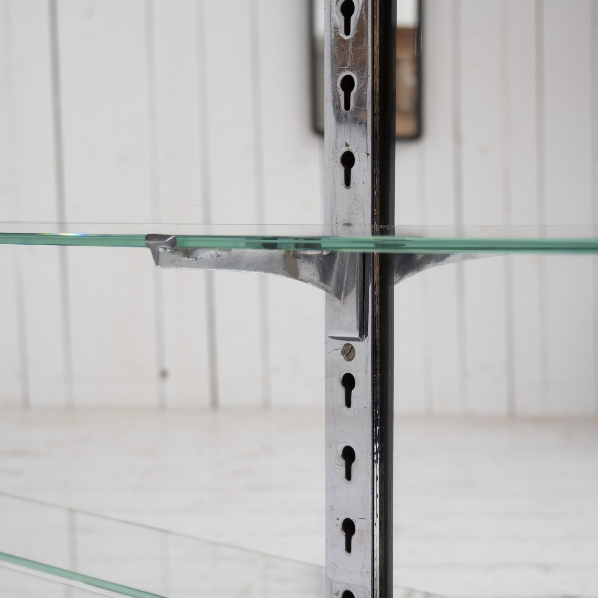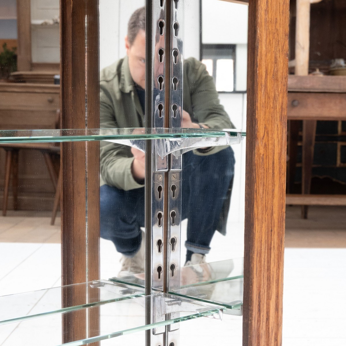 Vitrine sur le devant du meuble avec étagères en verres réglables en hauteur.