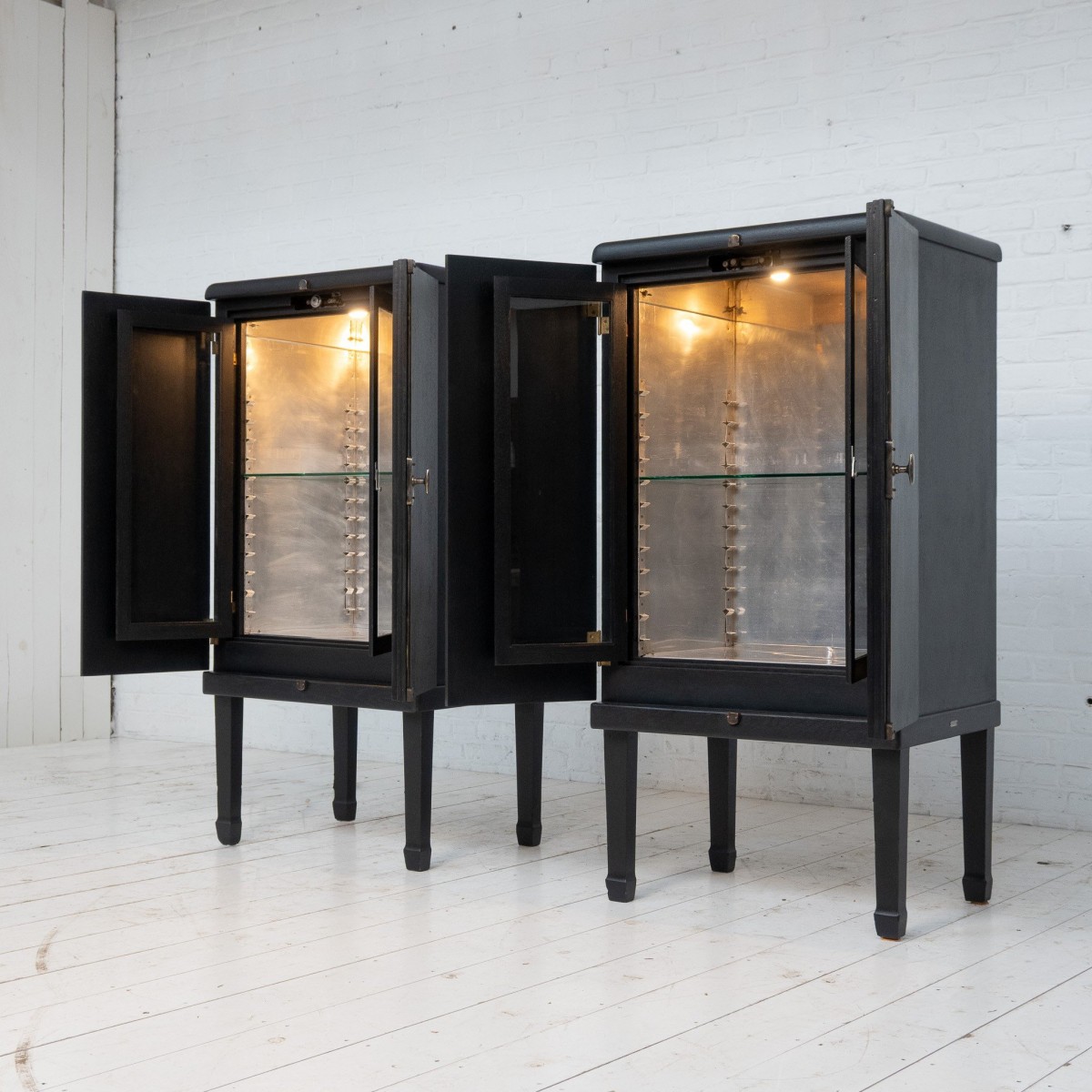 Paire de vitrines en placage de chêne noirci, XXe siècle.