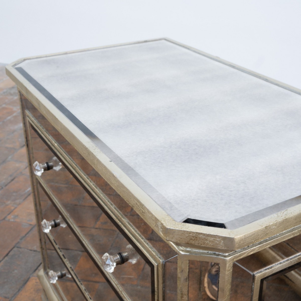 Plateaux, cotés et façades ornés de miroirs biseautés.